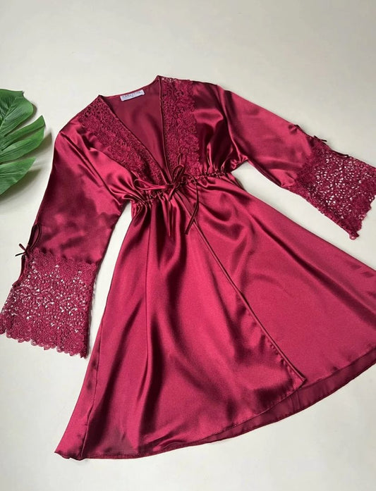 Silk Detailed 6-Piece Satin Nightgown Dressing Gown Set