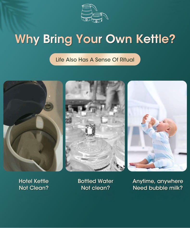 Product details of Fast Water Boiling Portable Kettle Travel Kettle Foods Boils Quickly Silicone Small Collapsible Foldable Electric Sports Bottles Light and durable Lightweight yet strong food-grade silicone safely resists high temperatures and maintains structure stability even while very hot. Collapsible Design One of the most amazing features of this tea kettle is that it is completely collapsible for easy storage and travel. Enjoy a hot cup wherever you are! Boils Quickly Save energy and time, with this quick boiling tea kettle. Boils water faster than a microwave, so you can quickly enjoy your tea, noodles, oatmeal, cocoa and more. Boil Dry Protection This revolutionary appliance saves energy and protects you by automatically shutting your electric tea kettle off if it senses that there is no more water left. One-button control Our fully portable water boiling system features an easy one-button control, translucent pitcher, and cool silicone design for your folding convenience. Specifications Item type:Kettle Material:Food Grade Silicone Color:White Quantity:1pc Plug:US/EU Voltage: EU:220-240V US:100-120V Rated power:700W Capacity:600mL Power cord length:0.7m/27.5” Kettle Size:14.8*12.3*10.6cm/5.8*4.8*4.2” Size:17.8*13.5*12.2cm/7.0*5.3*4.8" Net weight:500.2g/17.6oz